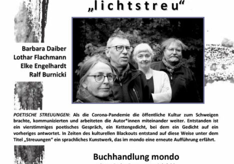 Das Lyrik-Kollektiv l i c h t s t r e u zu Gast im Museum Villa Stahmer, Carl-Stahmer-Weg 13 am 20. November 2022 um 18 Uhr. -